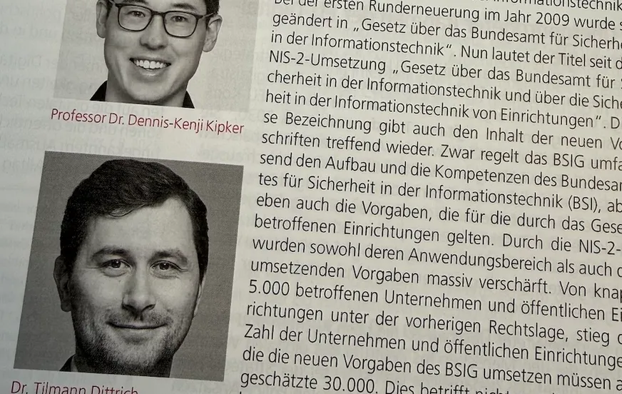 In neuen NIS-2-Leitfaden aus der aktuellen MMR-Ausgabe 03/2026 haben Herausgeber Prof. Dr. Dennis-Kenji Kipker (CII-Forschugsdirektor) und Dr. Tilmann Dittrich, LL.M. (CII-Senior-Advisor) diverse Themen und Kompetenzen zusammengebracht, die von den Erneuerungen des BSI-Gesetzes adressiert werden - u.a.